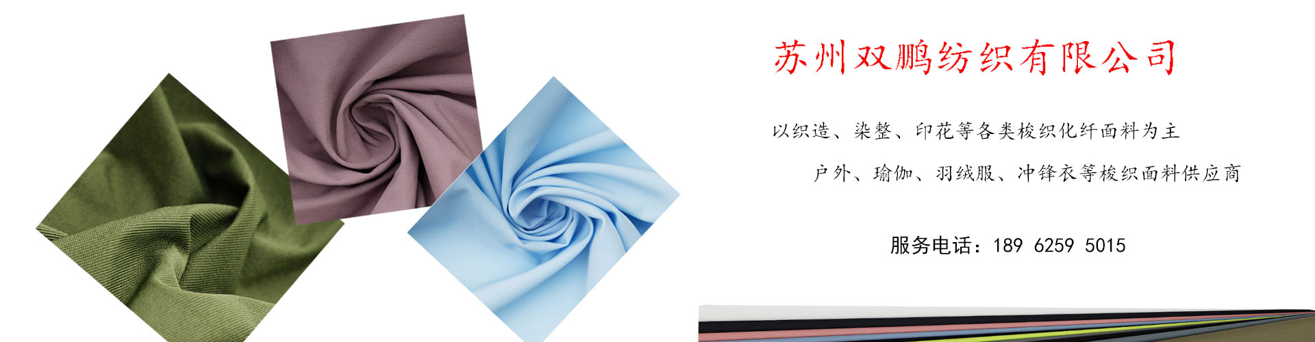 苏州双鹏纺织有限公司坐落于江苏盛泽,是一家专业从事纺织科技研发、生产和销售的高科技企业。公司以创新为核心,致力于为客户提供高质量的纺织产品与解决方案。采用先进的生产工艺和设备,主营户外,瑜伽,羽绒服,冲锋衣,四面弹、环保再生等梭织布料,,以满足市场对可持续发展的需求。为客户提供一站式服务,赢得了业界的广泛认可和客户的信赖,放眼全球,双鹏纺织正不断迈向新的辉煌。